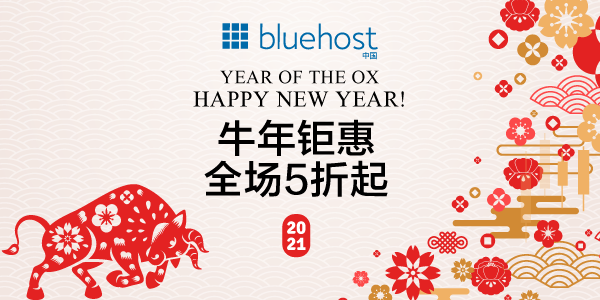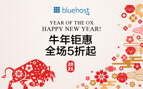[网站服务器] Bluehost金牛贺岁,春节送豪礼!  日期:2021-02-07 10:04:24 点击:71 好评:0