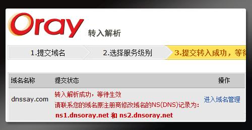 由此看来,将域名转入解析至Oray,就可获得免费的花生壳DDNS服务,不用交钱,如果你不信就去试试看吧。转入解析网址为:。