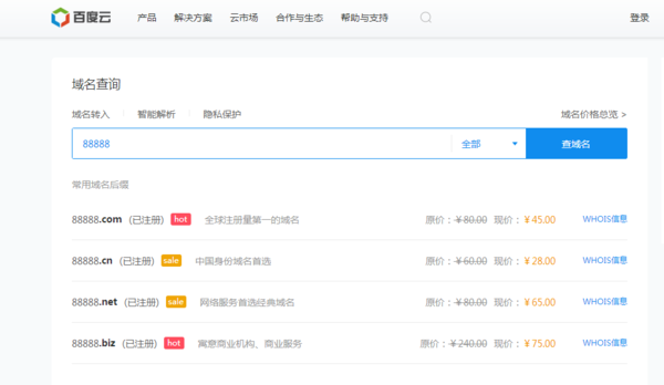 一般情况下,好的纯数字或者比较短的域名都被机构或者个人注册了,好的比较优质的域名已经很难找了。