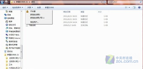 在Win7系统中,文件夹的共享更比WinXP方便很多,只需在Win7资源管理器中选择要共享的文件夹,点击资源管理器上方菜单栏中的“共享”,并在菜单中设置共享权限即可。如果只允许自己的Win7家庭网络中其他电脑访问此共享资源,那么就选择“家庭网络(读取)”;如果允许其它电脑访问并修改此共享资源,那么就选择“家庭组网(读取/写入)”。设置好共享权限后,Win7会弹出一个确认对话框,此时点击“是,共享这些选项”就完成了共享操作,很简单吧。