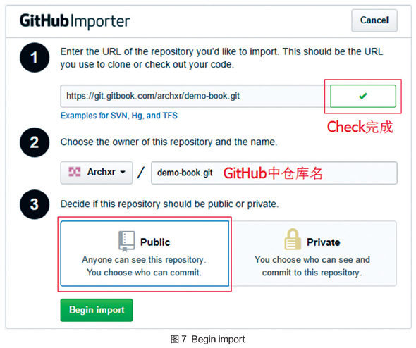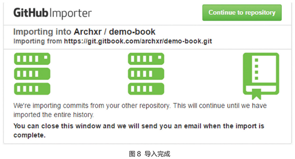 12.接下来会跳转到GitBook的授权页,在这里输入GitBook的账户名和密码,后点击“Authenticate”,授权后等待导入完成,如图8所示。