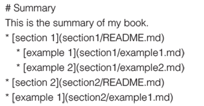 2.SUMMARY.md定义了图书的目录。它应该包含章节的列表,以及它们的链接。