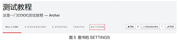 8.在GitBook中创建完成后会跳转到图书的欢迎页面,在页面中点击“SETTINGS”进入图书的设置页面,如图5所示。