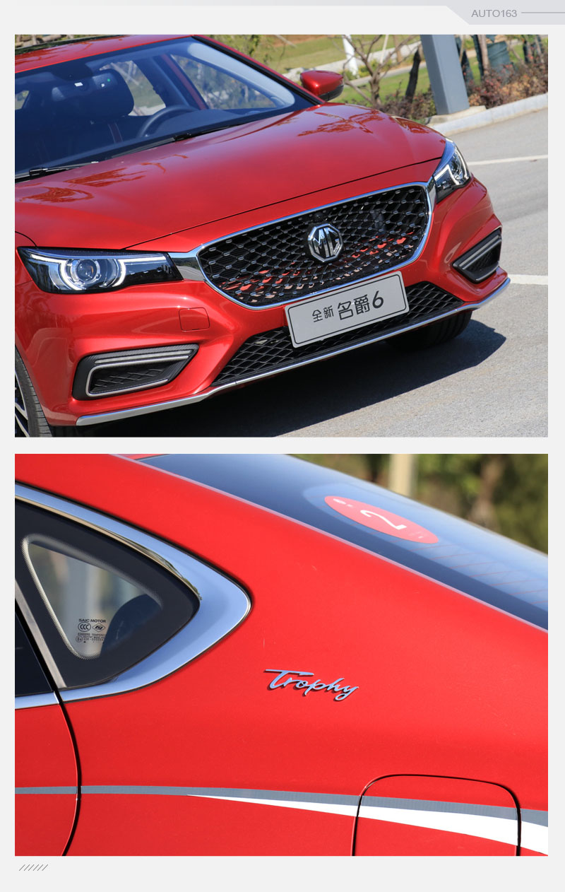 格栅的造型显然是经过设计师的精心处理,实车看上去要比照片更耐看,车辆的前部是名爵6最讨喜眼球的角度。