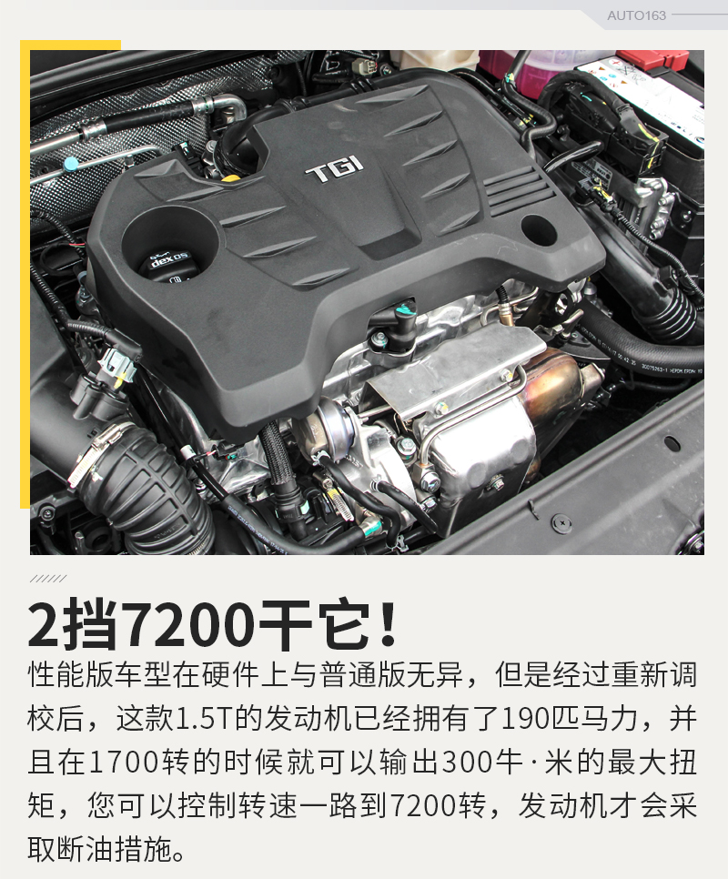 1.5T涡轮增压直喷发动机和7DCT变速箱的组合,这套动力系统也是与通用合作开发的。在试驾的自动挡车型上,发动机最大功率124千瓦,最大扭矩为250牛米,也和威朗等动力相当。驱动名爵6也是相当直接,测试的0-100公里\小时加速时间为7.12秒,在同级车型中处于领先地位。