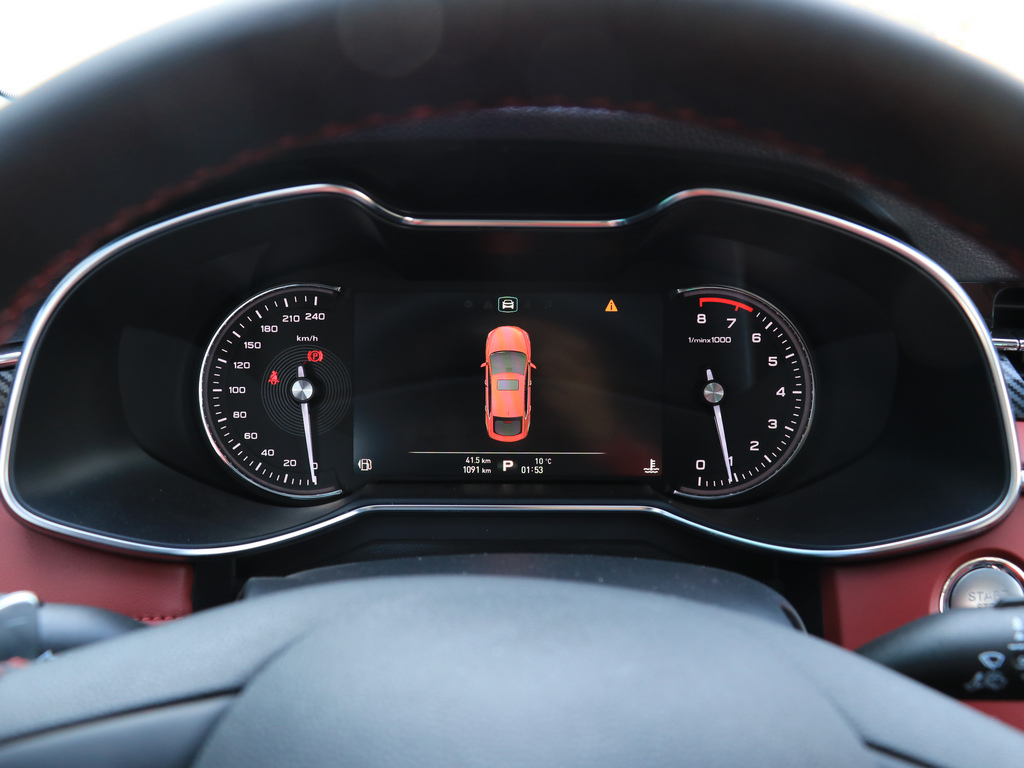 出风口用了烤漆、镀铬两种元素,跟名爵ZS基本一致,中控附近的碳纤维装饰在红色内饰和镀铬条的衬托下营造的气质是很吸引年轻人的。