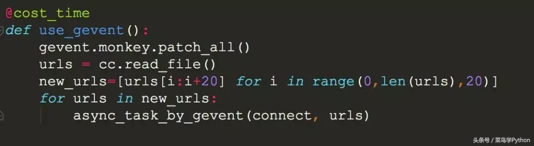 requests不能直接并发,需要用猴子补丁importgevent.monkey。而且为了防止一次并发太多,我们把每次请求的域名进行分段,一次请求20个域名!
