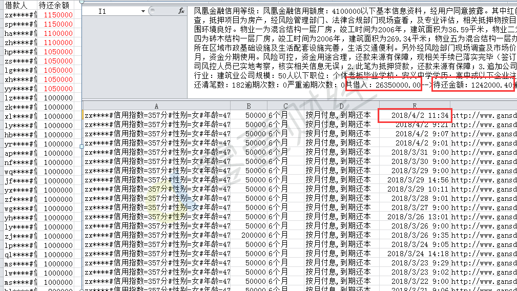 这3000多万待还对应着35~40位企业借款人,其中待还超过100万的有9位,最大单一借款人待还余额为115万。