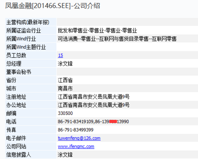 通过查询Wind,得到安义县凤凰金融服务有限公司的另两个联系方式,座机拨打是空号,手机拨打可接通,但对方否认是凤凰金融/赣商贷。