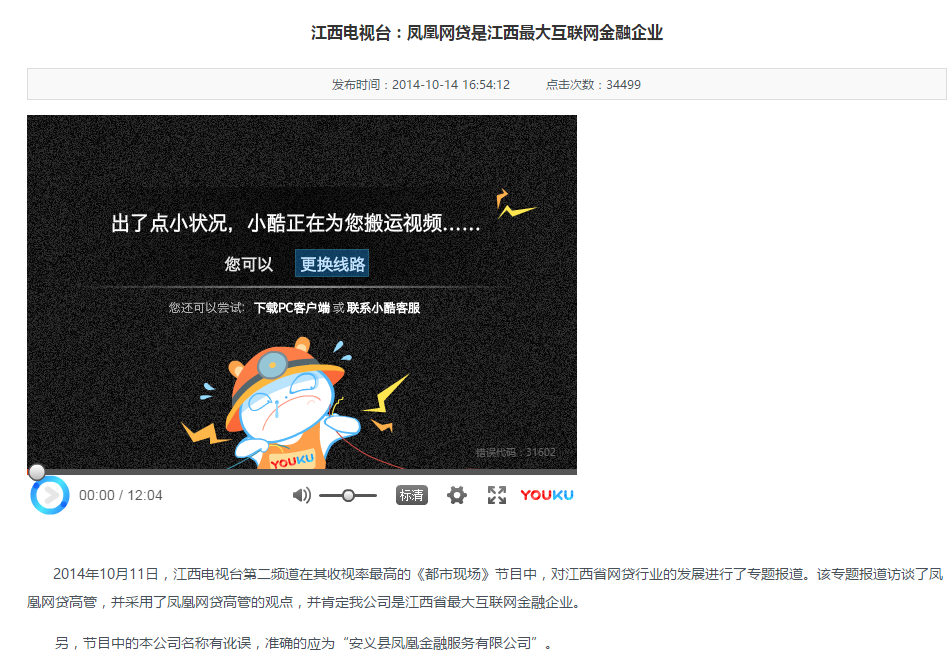 还声称节目中的本公司名称有讹误,准确的应为“安义县凤凰金融服务有限公司”。