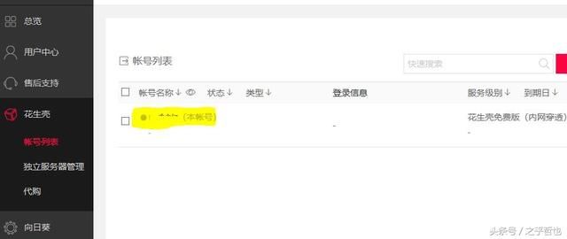 进入花生壳管理中心后,就会看到我们的账号名称,如上图黄色标注显示,然后我们点击自己的账户名称。