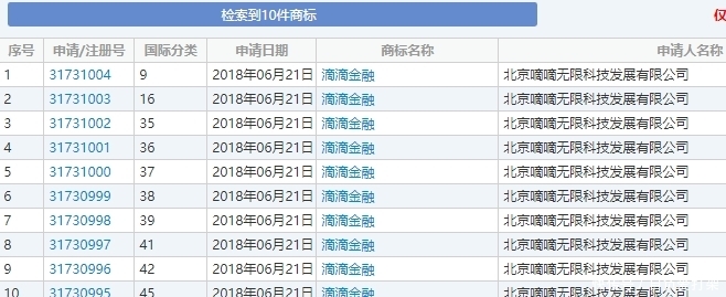 而在具体业务的商标方面,滴滴出行也没有轻视。商标局官网显示,滴滴出行在2018年10月22日申请注册了10件与“点滴相互”相关的商标;同年11月1日又申请注册了5件“点滴求助”商标。
