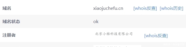 在“小桔车服”正式上线后没几天,我接到一位网名叫 @半根烟的米友曝料,他名下一枚四拼神秘买家以5位数价格收购。时隔四五个月的时间,现如今我查询却发现,域名xiaojuchefu.cn如今已经转入“北京小桔科技有限公司”名下。