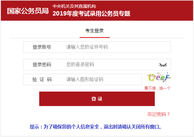 1.报考人员在全省范围内只能选择一个职位进行报名;2019年1月22日9∶00至1月28日16∶00期间,报考资格尚未审核或资格审核未通过的,可以改报其他职位;2019年1月28日16∶00至1月30日16∶00期间,报考资格未审核或资格审核未通过的,不能再更改报名信息,也不能再改报其他职位;报名时必须使用在有效期内的二代身份证。