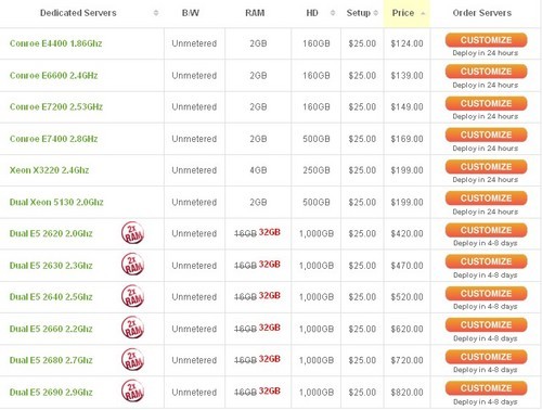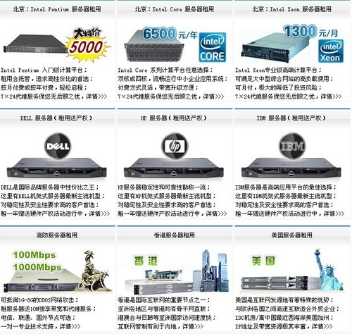 买电脑看配置,买服务器看配置,租用服务器同样要看配置。同一款系列的服务器,配置不同,性能和价格会相差很多。虽 然英特尔今年推出了全新的Sandy Bridge至强E5处理器和Ivy Bridge至强E3-1200v2处理器,但服务器租用市场上大部分还是上一代的产品机型。包括基于至强E5500和E5600的机架服务器,甚至还有提供基于双核奔腾和四核酷睿的机型。考虑到业务承载的重要性,笔者强烈建议选购基于企业级专用的至强系列服务器(极少部分采用AMD皓龙),并且不失扩展性。也就是说,选配置的首要原则是看稳定性和扩展性,其次要考虑兼容性,避免服务器内部某些配件为廉价组件而暴露兼容性和性能瓶颈问题。